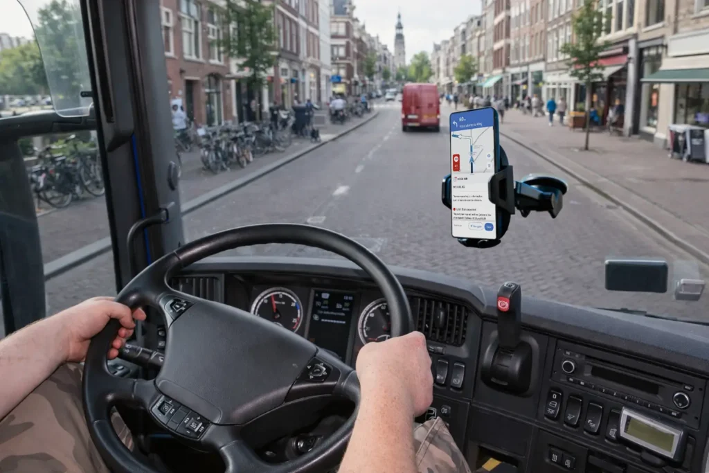 We bouwen aan zero-touch navigatie voor logistiek, waarin planning, verkeersinformatie en uitvoering automatisch samenwerken. Ritwijzigingen, locatie-intelligentie en verkeersinformatie worden verwerkt zonder handmatige acties van de chauffeur. Minder scherminteractie. Meer rust in de cabine. Meer veiligheid op de weg. Meer controle over de operatie.